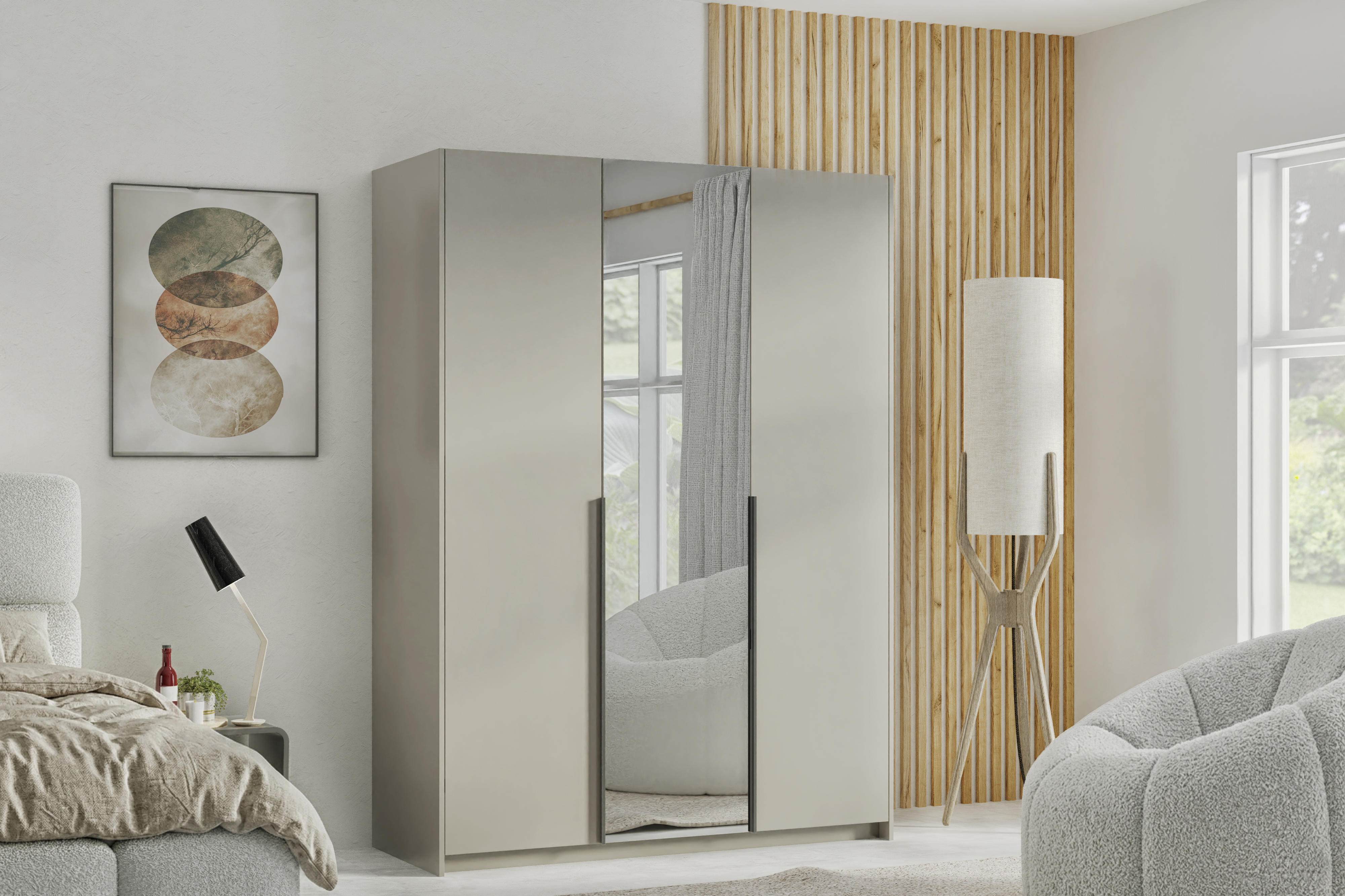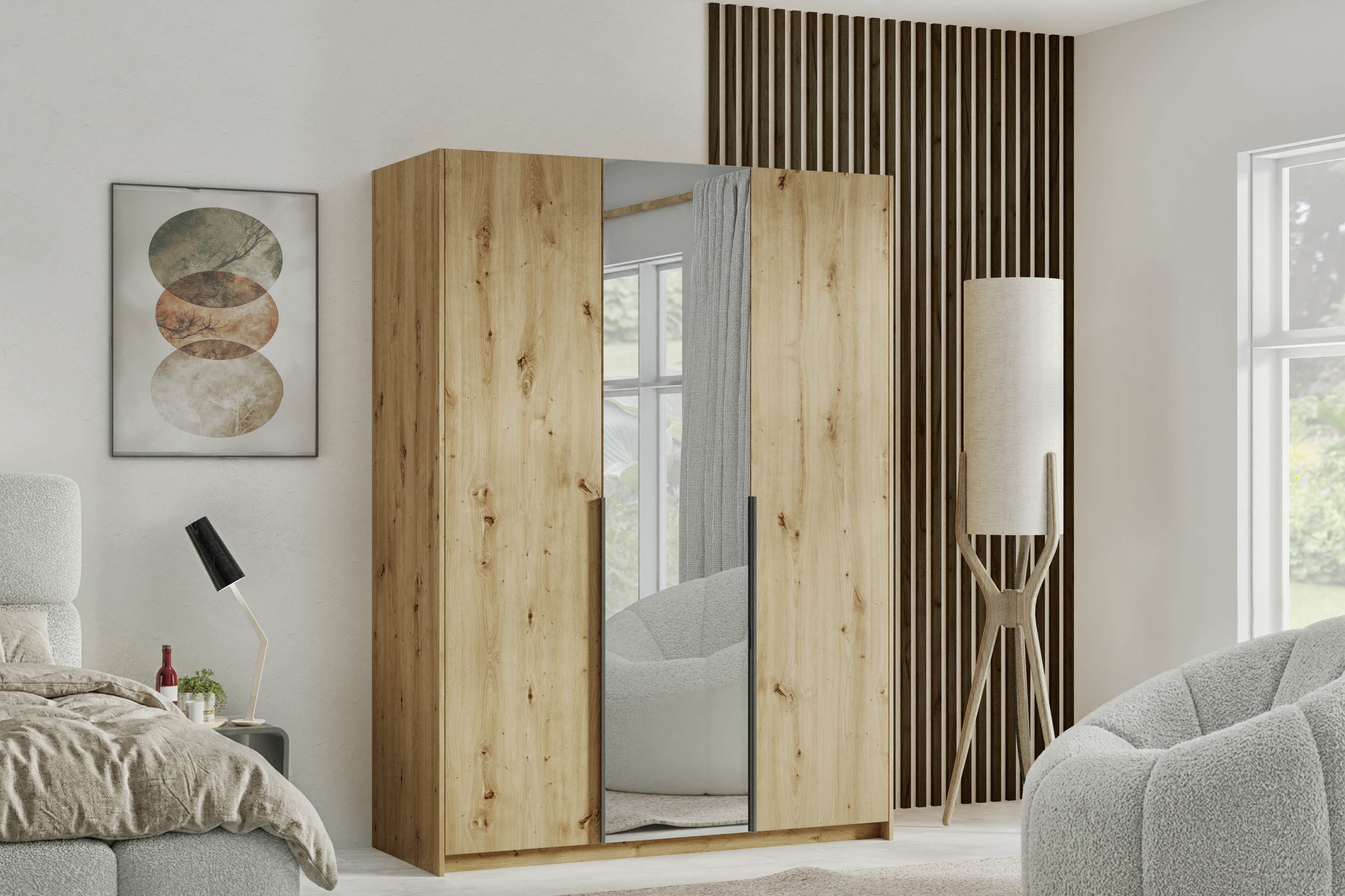 Szafa z lustrem 150 cm – Dąb Artisan / Kaszmir / Biały